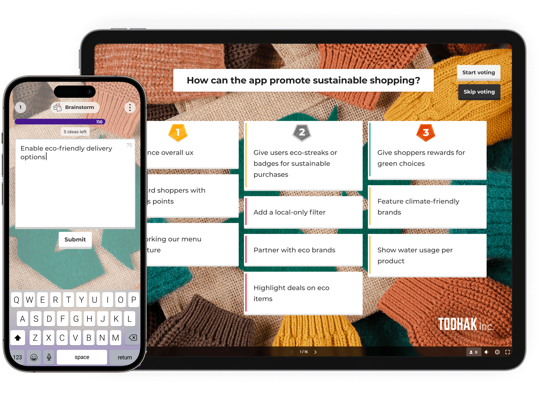 Generate ideas and drive action with dynamic brainstorming tools in Kahoot! 360. Engage participants, gather diverse insights, and collaboratively prioritize the best suggestions for innovative and inclusive outcomes.